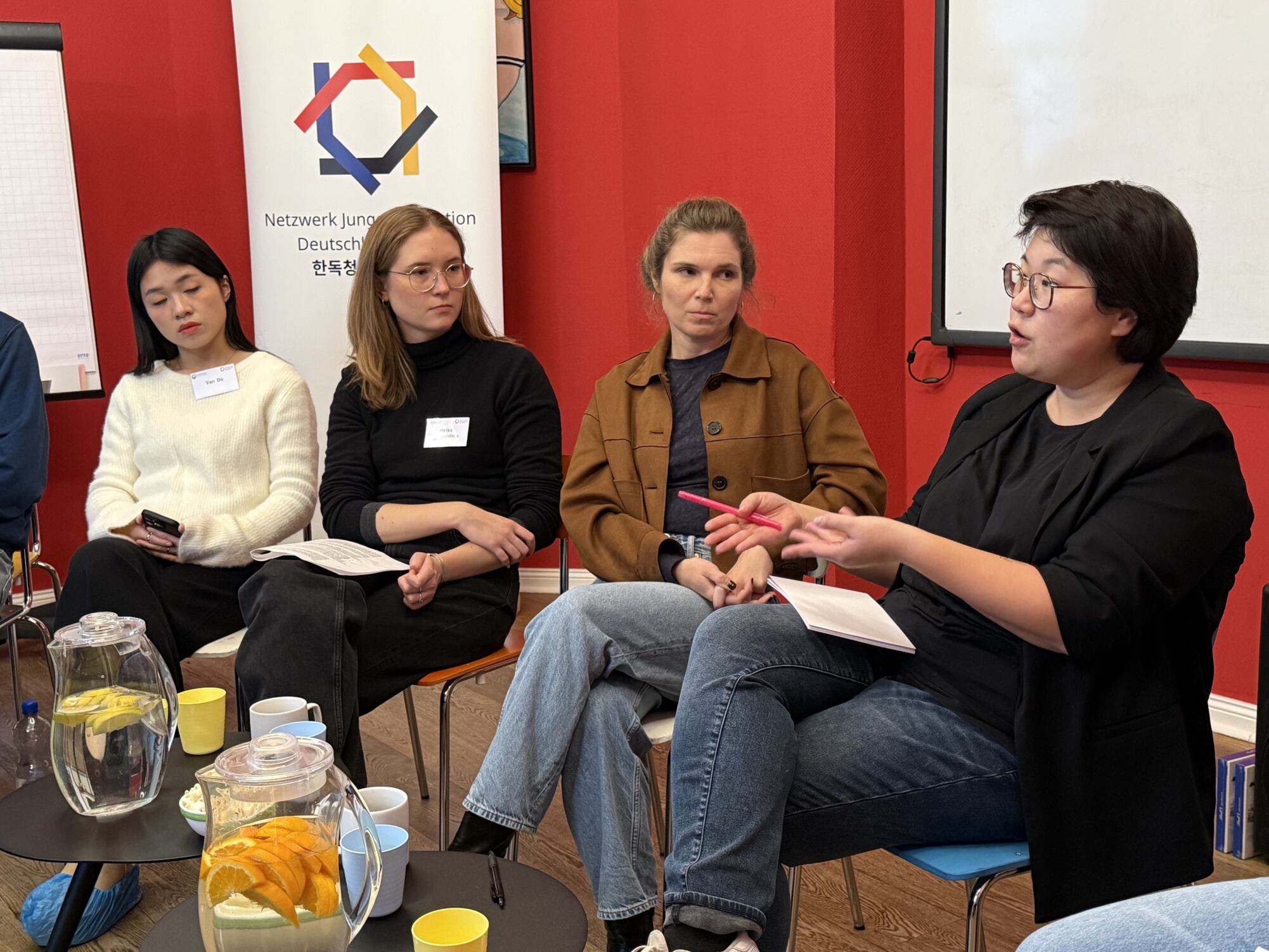 Der Samstag war der vertieften Gruppenarbeit gewidmet. Nach einem sehr informativen Expertenvortrag, der neue Perspektiven eröffnete, erarbeiteten wir in unserer AG eigene Lösungsansätze. In der Gruppenarbeit lag der Fokus nicht nur auf Korea, sondern bewusst auch auf Deutschland. Das ermöglichte einen direkten Vergleich: Welche Gemeinsamkeiten und Unterschiede gibt es bei den Herausforderungen von Altersarmut und sozialer Inklusion? Durch diesen Blick konnten wir bereits vorhandene Lösungsansätze des einen Landes auf die Situation des anderen beziehen, sie auf ihre Übertragbarkeit prüfen und daraus neue Ideen entwickeln. Besonders gut gefiel mir die Struktur des Tages mit ausreichend Pausen, die konzentriertes Arbeiten ermöglichte Im Anschluss stellten alle Gruppen ihre Ergebnisse vor. Dieser Austausch war sehr bereichernd, da man nicht nur das eigene Thema vertiefte, sondern auch Einblick in die Arbeit der anderen bekam. Ein prägendes Format war die Fishbowl-Diskussion mit Ye-one Rhie und Madeleine Hofmann. Sie gewährte einen authentischen Einblick in die Umsetzung der diskutierten Themen in Politik und Medien. Neben all den Vorträgen und Diskussionen kam auch das lockere Miteinander nicht zu kurz. Beim gemeinsamen Karaoke-Abend kam man sich näher, und das Frühstück am letzten Morgen war ein schöner, entspannter Abschluss für alle.