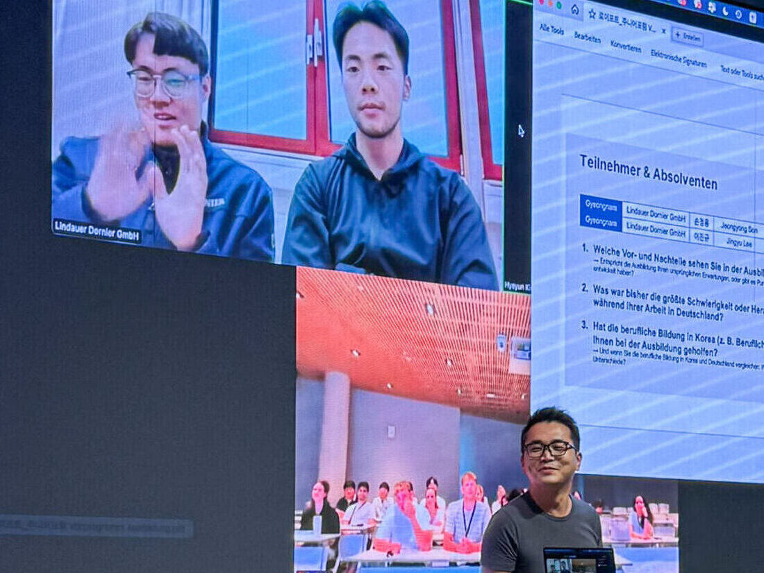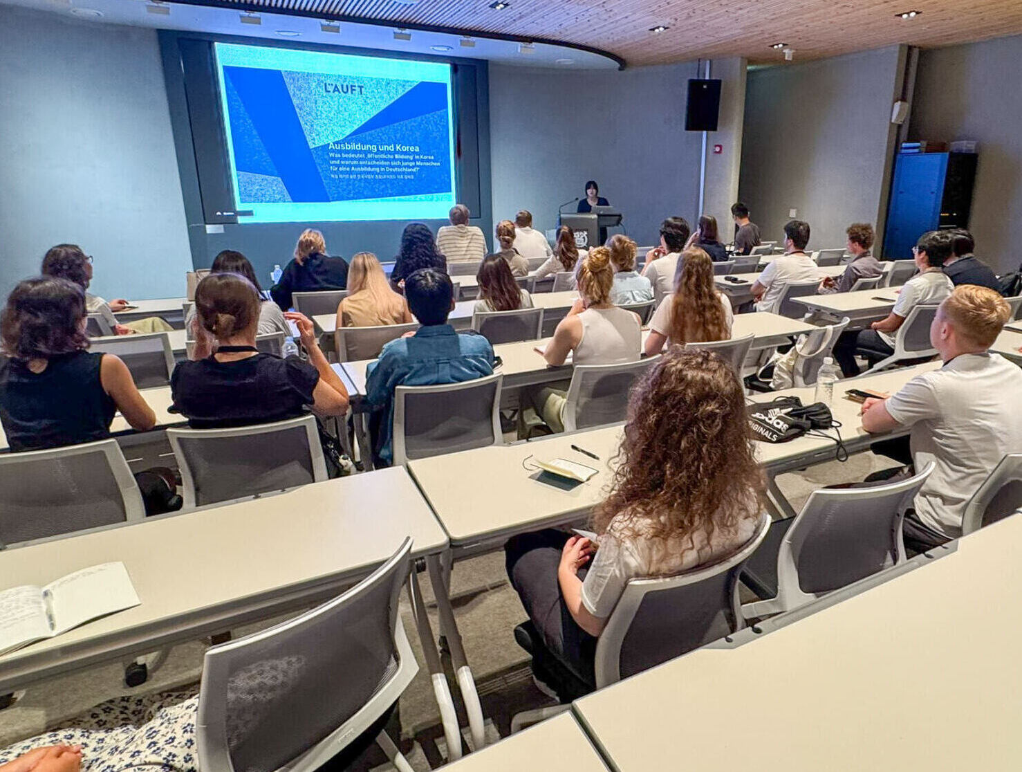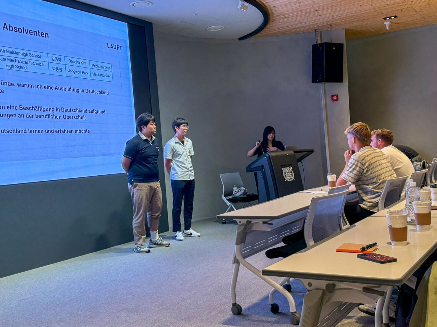 Am 05.09.2025 fand ein Vortrag der Frau Hye-Yun Kim vom Unternehmen LÄUFT sowie ein Austausch mit Auszubildenden, die kurz vor ihrem Umzug nach Deutschland bzw. dem Abschluss ihrer Ausbildung standen, statt. Im Mittelpunkt stand die Frage: „Was bedeutet öffentliche Bildung in Korea und warum entscheiden sich junge Menschen für eine Ausbildung in Deutschland?“