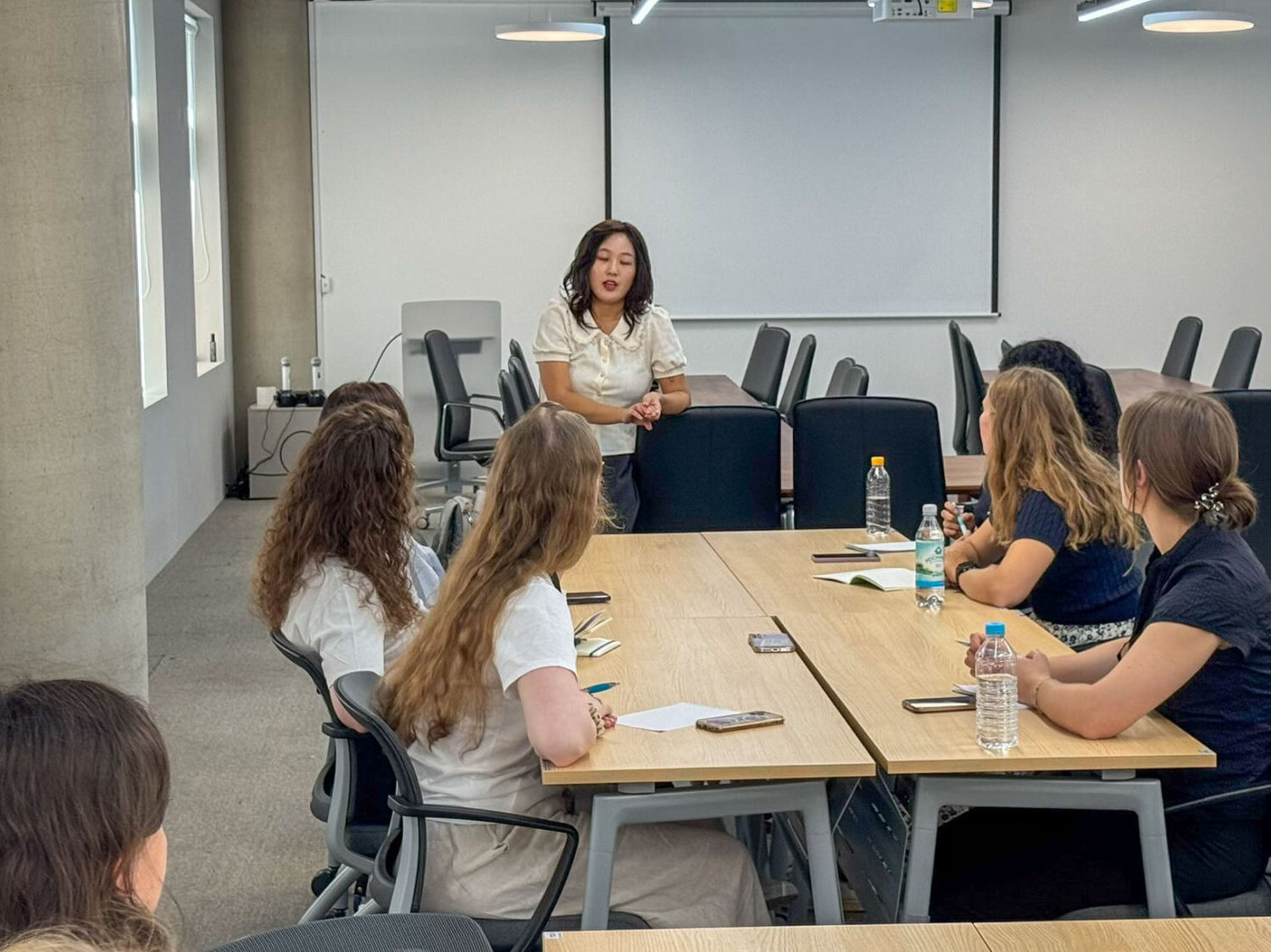 Der Tag begann um 10 Uhr mit einer Austausch-Session im Institutsgebäude, die von Dr. Woo-Jeong Baek geleitet wurde, welche uns den Tag über begleitete und auch als Mentorin in der Arbeitsgruppe „Digital Transformation and Artificial Intelligence“ beim Juniorforum tätig war. Sie hatte in ihrer Vergangenheit am Karlsruher Institut für Technologie im Bereich Robotik und Informatik promoviert und bis vor kurzem als Post-Doc am KI-Institut der SNU gearbeitet. Dadurch konnte sie uns auf einmalige Weise Einblicke in beide Forschungssysteme geben und die Gemeinsamkeiten wie auch die Unterschiede aus ihrer eigenen Erfahrung heraus schildern.