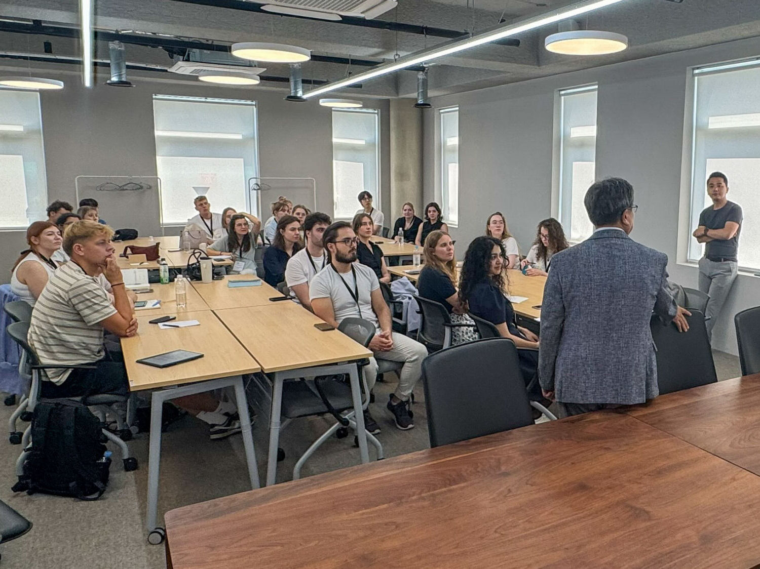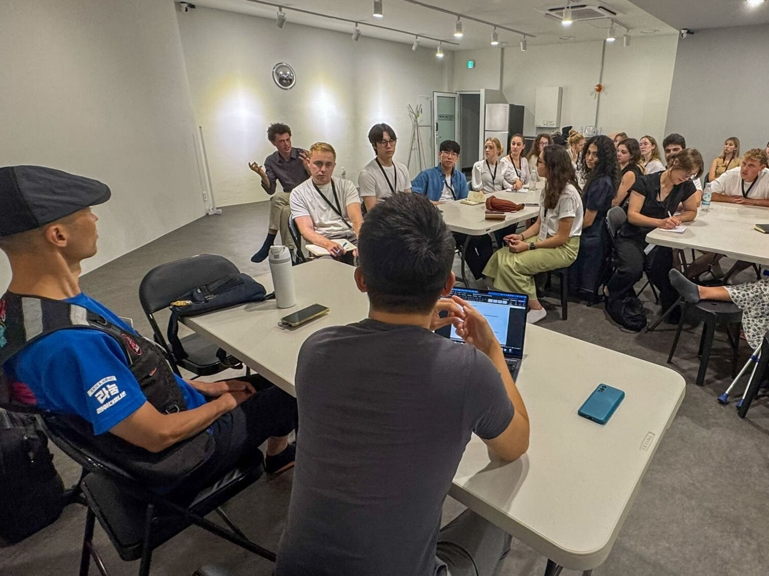 Am 5. September 2025 startete der erste inhaltliche Programmtag des Juniorforums in Seoul. Nach einem Besuch des KI-Instituts an der Seoul National University und einem Gespräch zum Thema (Aus-)Bildung in Südkorea führte uns der Nachmittag zu einem Treffen mit Herrn Gyo-hyun Koo, dem Vorsitzenden der Rider Union, einer Gewerkschaft für Lieferfahrer*innen. Dieses fand in einem Seminarraum der Sookmyung-Universität statt und wurde konsekutiv von Muhong Lee vom Koreanischen ins Deutsche übersetzt.