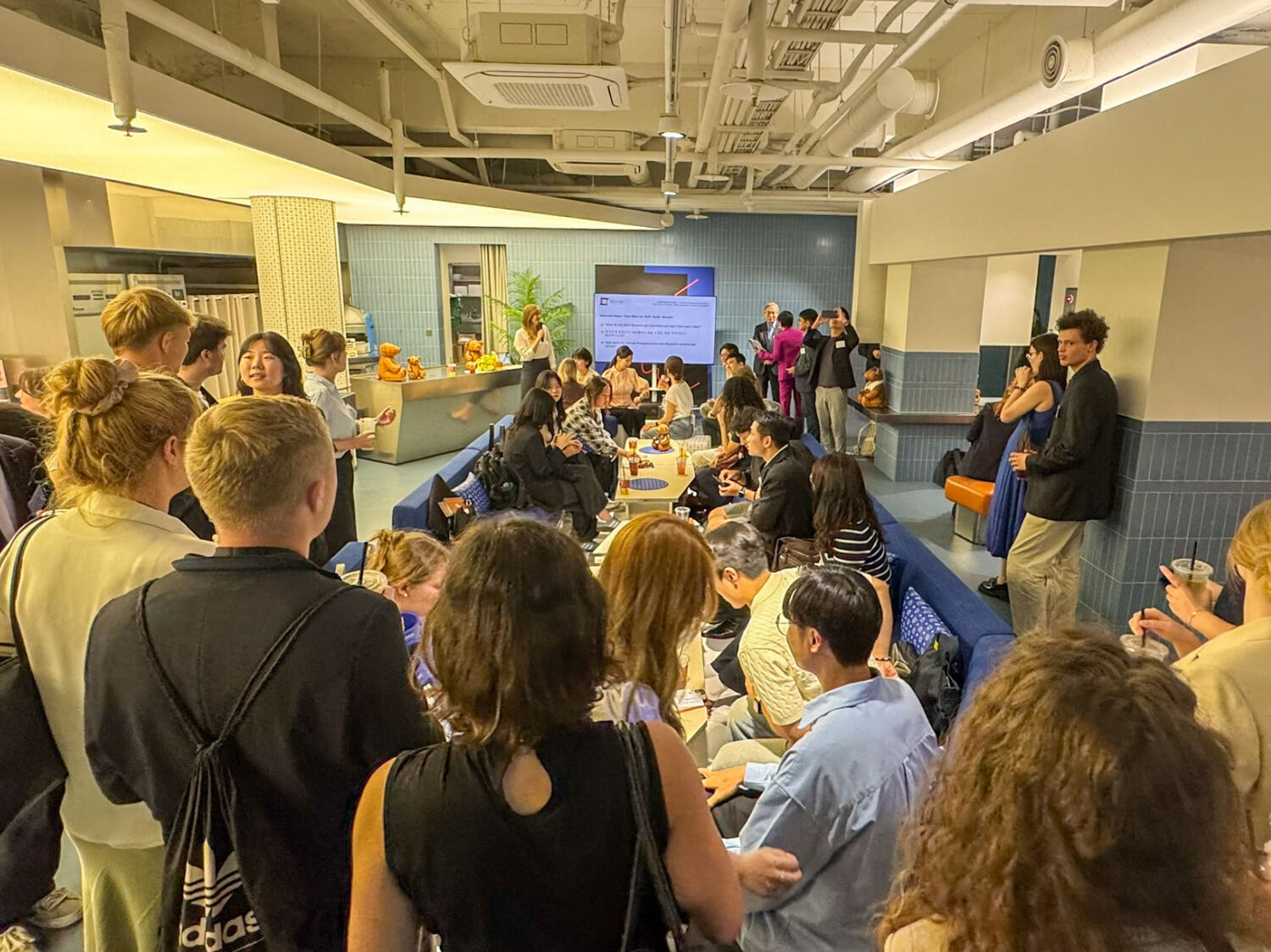 Dass wir unsere Willkommensfeier während des Seoul Frieze Festivals hatten, war ein schöner Nebeneffekt, denn die Ausstellung auf der 5. Etage blieb für uns geöffnet, sodass wir noch etwas Kunst genießen konnten. Zuletzt wurden noch die Gewinnerteams des „Find your Match“ Spiels mit Preisen von MCM belohnt und wir plauderten, lachten und diskutierten munter weiter. Insgesamt war der Abend ein gelungener Auftakt für unsere Arbeit im Juniorforum und es war eine tolle Möglichkeit die koreanische Delegation, unsere Mentor:innen und einige Special Guests zunächst in einem lockeren, ungezwungenen Umfeld und Austausch kennen zulernen. Ein herzlicher Dank gilt an dieser Stelle ADeKo für die Organisation eines solchen Abends und den kleinen Vorgeschmack, was das Juniorforum alles für uns zu bieten hat.