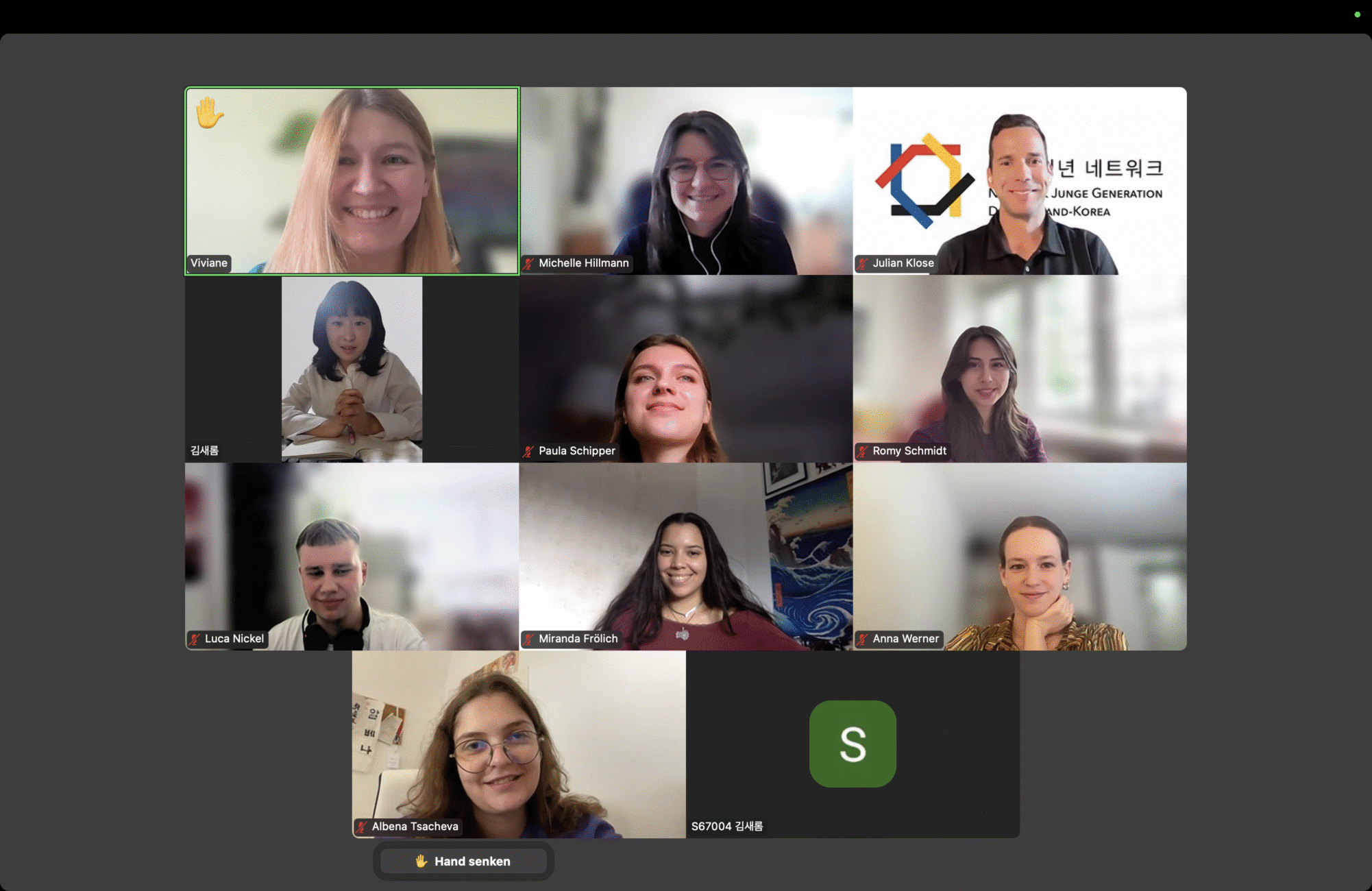 Am Samstag, 23. August 2025, lud das Netzwerk Junge Generation Deutschland Korea zu einer spannenden Präsentation unter dem Titel „Youth and the Future of Korean Unification“. Referentin war Saerom Kim, die seit Jahren im Bereich Unifikationsbildung aktiv ist. Mit Erfahrungen als nationale Debattenmoderatorin zu jugendrelevanten Themen, einer Bachelorarbeit zur Unifikationspädagogik und Projekten zur internationalen Nordkorea-Verständigung brachte sie eine vielseitige Perspektive ein.